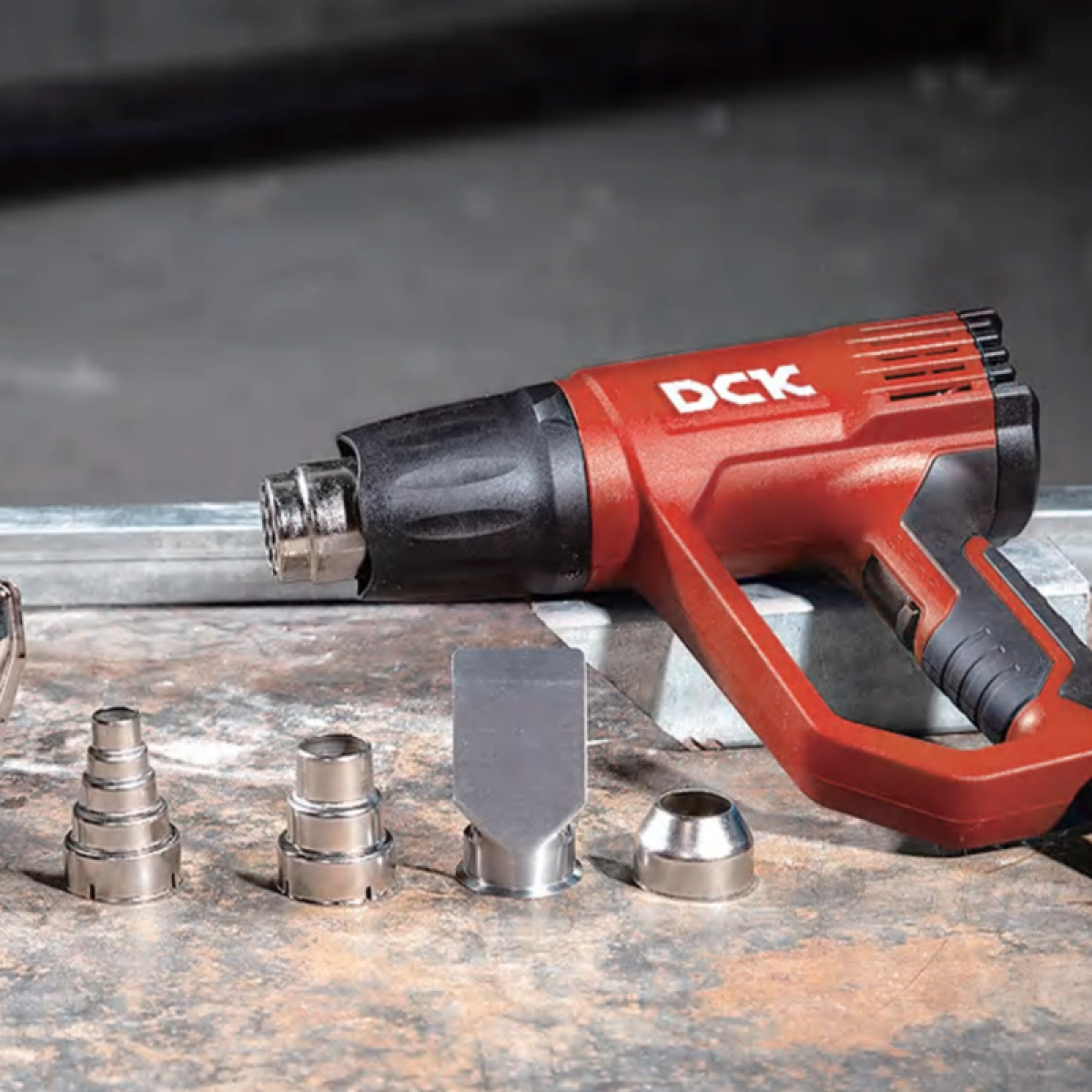 Технический фен Фен DCK KQB04-2000 имеет три режима работы, а таже колесо точной настройки в задней части фена, которая позволяет регулировать темепературу с точностью 10 ℃.  Инструмент удобно лежит в руке благодаря прорезиненной ручке. Корпус как и положено сделан из термостойких материалов.